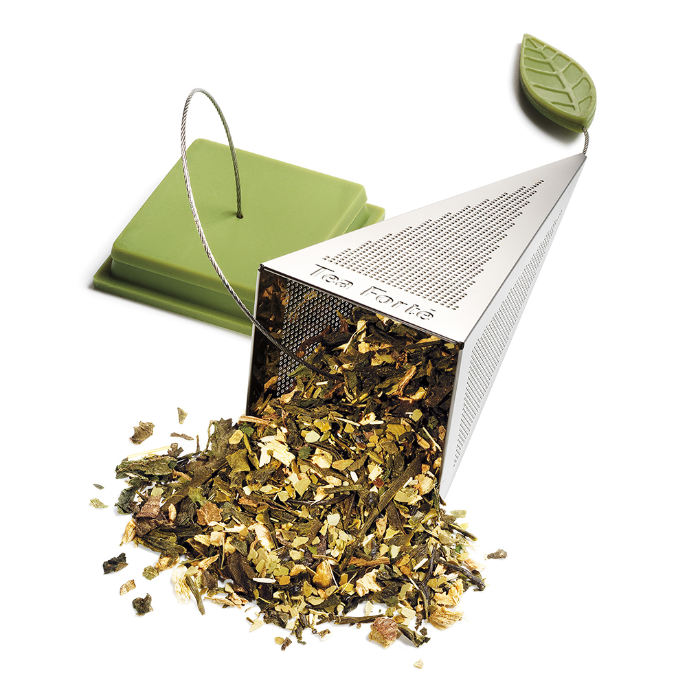 Steep loose tea again and again with our iconic, pyramid-shaped loose tea infuser that works in your favorite 8-14 oz mug or teacup. To use, simply remove the silicone base, fill with 1-2 teaspoons of loose-leaf tea, replace the base, and steep. When done steeping, remove the infuser and enjoy an elegant cup of loose leaf tea.